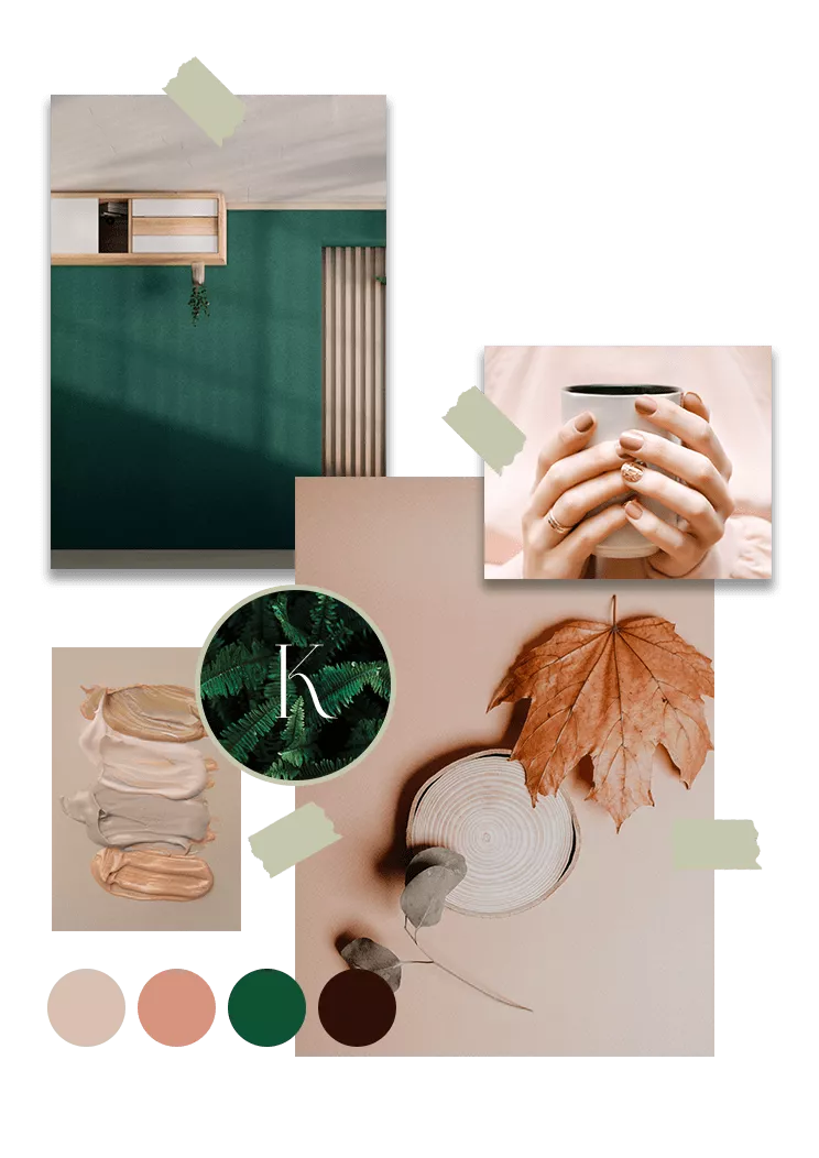 Un moodboard : une planche d’ambiance visuel pour capturer l’atmosphère, l’esthétique et l’esprit de ton entreprise.