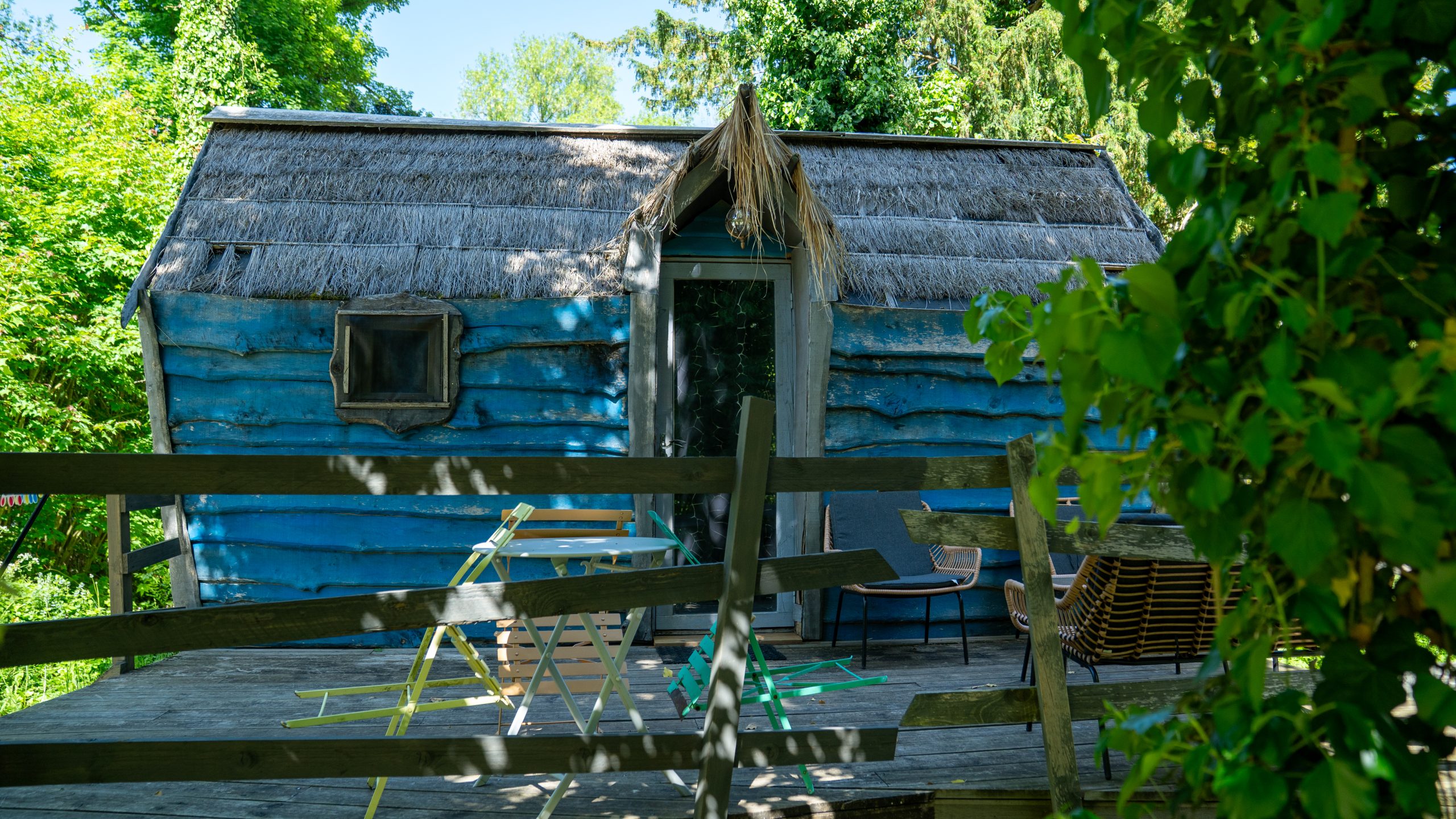 Avec sa teinte bleue, son bois brut et son toit en paille, la Cabane Kyara offre un cocon original et apaisant, pensé pour vous faire vivre une véritable parenthèse d’évasion au cœur de la nature.